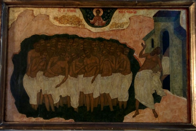 (На иконе, рассказывающей о подвиге сорока севастийских мучеников, красноречиво скрыто лицо того, кто соблазнился… А оставшихся воинов мы видим стоящих плечом к плечу, поддерживающих друг друга, так, чтобы отдать брату частичку своего тепла и помочь выдержать страшное испытание. Только ли во время поста поучителен для нас их пример?..)